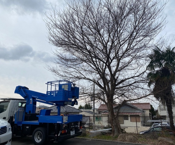 落ち葉で近隣に迷惑をかけているため樹木伐採を行いました。